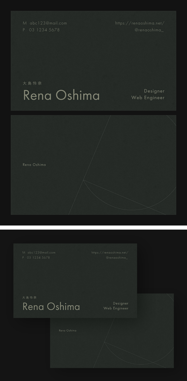 自分の名刺を作成しました。個人の名刺のため載せる情報が少なかったのですが、デザイン性のあるレイアウトに拘りました。